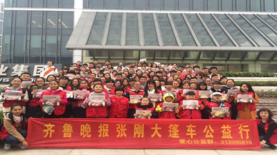 阳光先锋青年志愿者协会来到山东新闻大厦举行的由齐鲁晚报大篷车举行的爱心义卖活动。此次活动筹集了很多公益基金,这些基金将捐给德州市平原县的刘屯小学。
