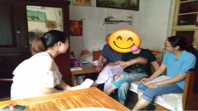 社工系学生在实习机构社工的带领下,入户做关于老人“居家安全”的调查问卷。