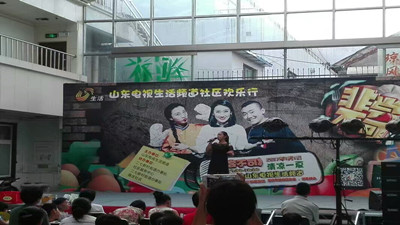 7月7日晚6点30分,山东电视台生活频道联合济南市市中区二七社区举办社区欢乐行消夏晚会。山东电视台生活频道《非尝不可》栏目的三位主持人、表演嘉宾和济南市公共营养师协会的专家参与了此次社区欢乐行消夏晚会的演出,观众有社区居民和志愿者60余人。