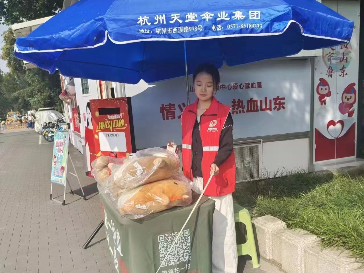 阳光先锋青年志愿者协会成员前往省血液中心投放的解放桥献血点开展志愿服务活动。