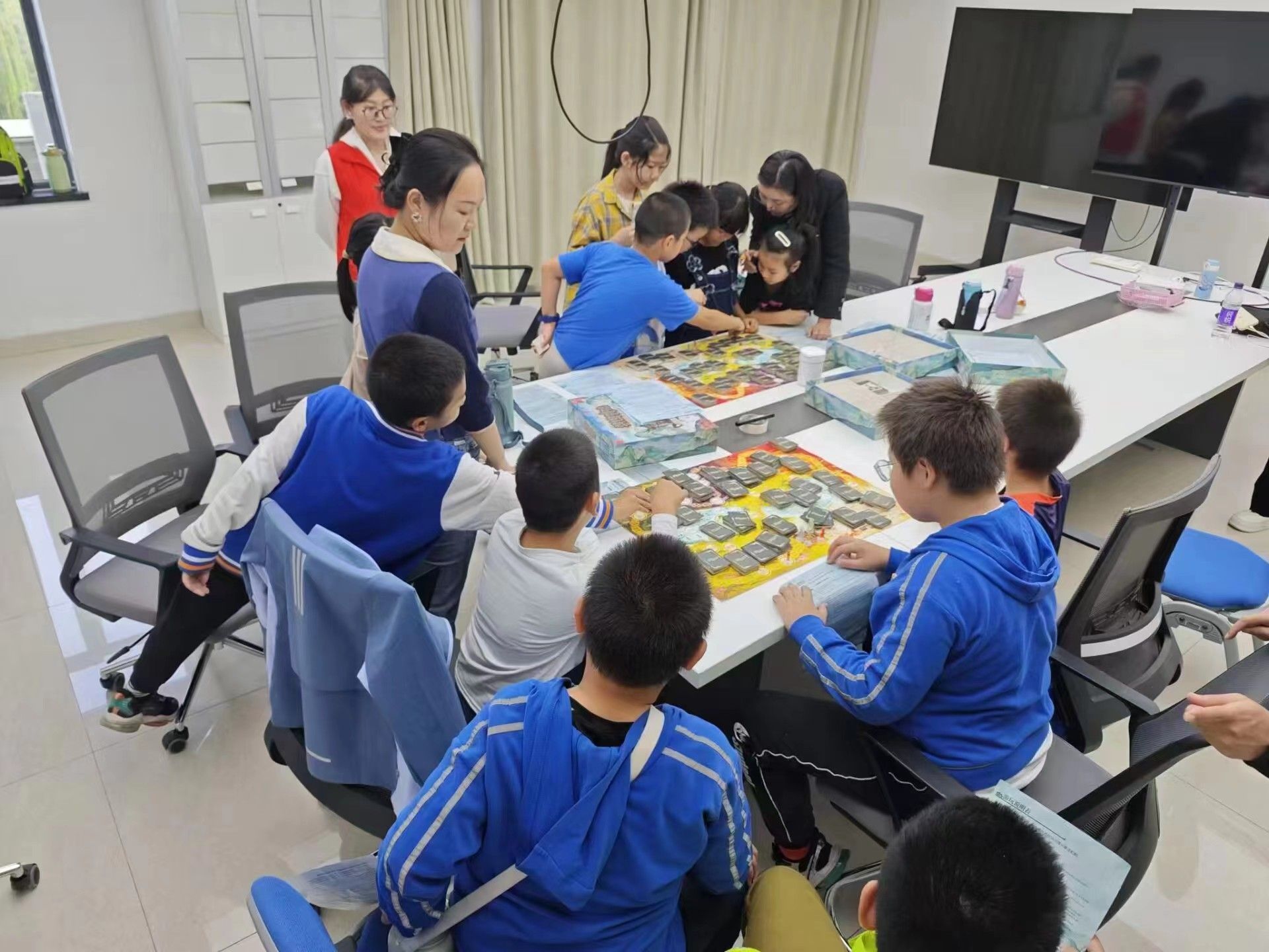 活动伊始,志愿者们协助老师准备整理精美的桌游材料,设计多样的互动环节。在老师讲解完游戏规则后,志愿者们帮助孩子们分组进行游戏,通过掷骰子、解答诗词问题和完成创意挑战等方式积分,最终根据积分高低决出胜负。这种形式不仅考验了孩子们的诗词知识,也锻炼了他们的团队合作和策略规划能力。同时,志愿者们也参与到活动中引导孩子们顺利进行游戏,更好地维护了游戏秩序。在活动中,孩子们展现出了极高的热情和参与度,他们在志愿者和基地老师的引导下,积极讨论诗词背后的历史文化,互相交流心得体会,孩子们沉浸在文学世界中,现场气氛愈加热烈。志愿者在活动中不仅领略了诗词的魅力,还增进了对传统文化的了解和热爱。孩子们亦在游戏中体验到了诗歌的韵律之美,更激发了他们对阅读和创作诗歌的兴趣。