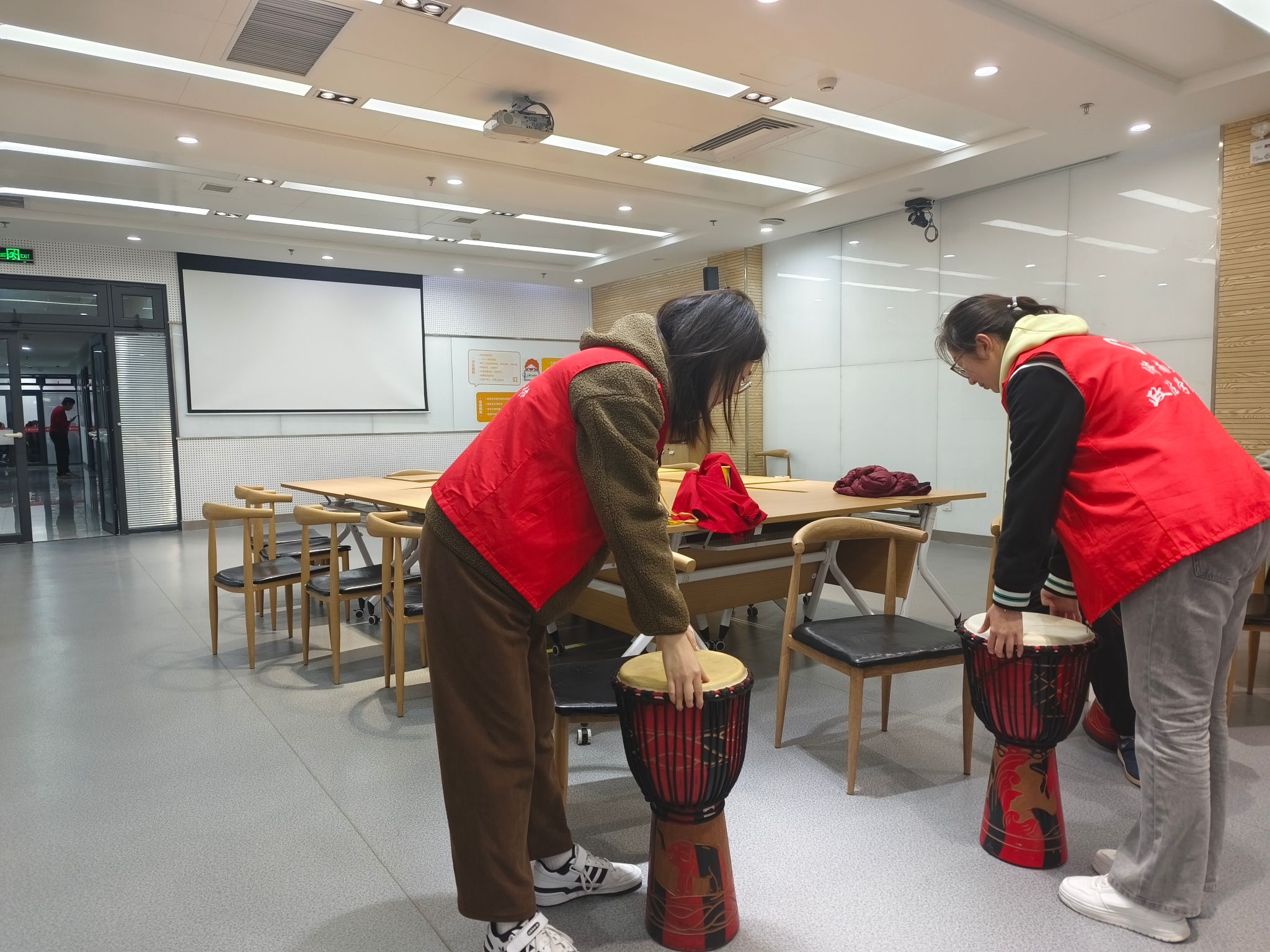 活动当天,志愿者们提前到达慧爱基地,细心准备活动所需物品、道具,为接下来的音乐活动做准备。授课过程中,志愿者们在旁边陪伴、指导学生们打非洲鼓,和他们一同感受音乐的魅力。在这次的非洲鼓公益课堂中,学生们尽情地享受着音乐带来的快乐和温暖,空气中回响着欢快的节奏,每个人的脸上都洋溢着灿烂的笑容。他们在体验学习非洲鼓拍打节奏技巧的同时,还愉悦了身心,丰富了精神生活。志愿者们则用自己的行动诠释了爱心与责任,为社会传递了正能量。