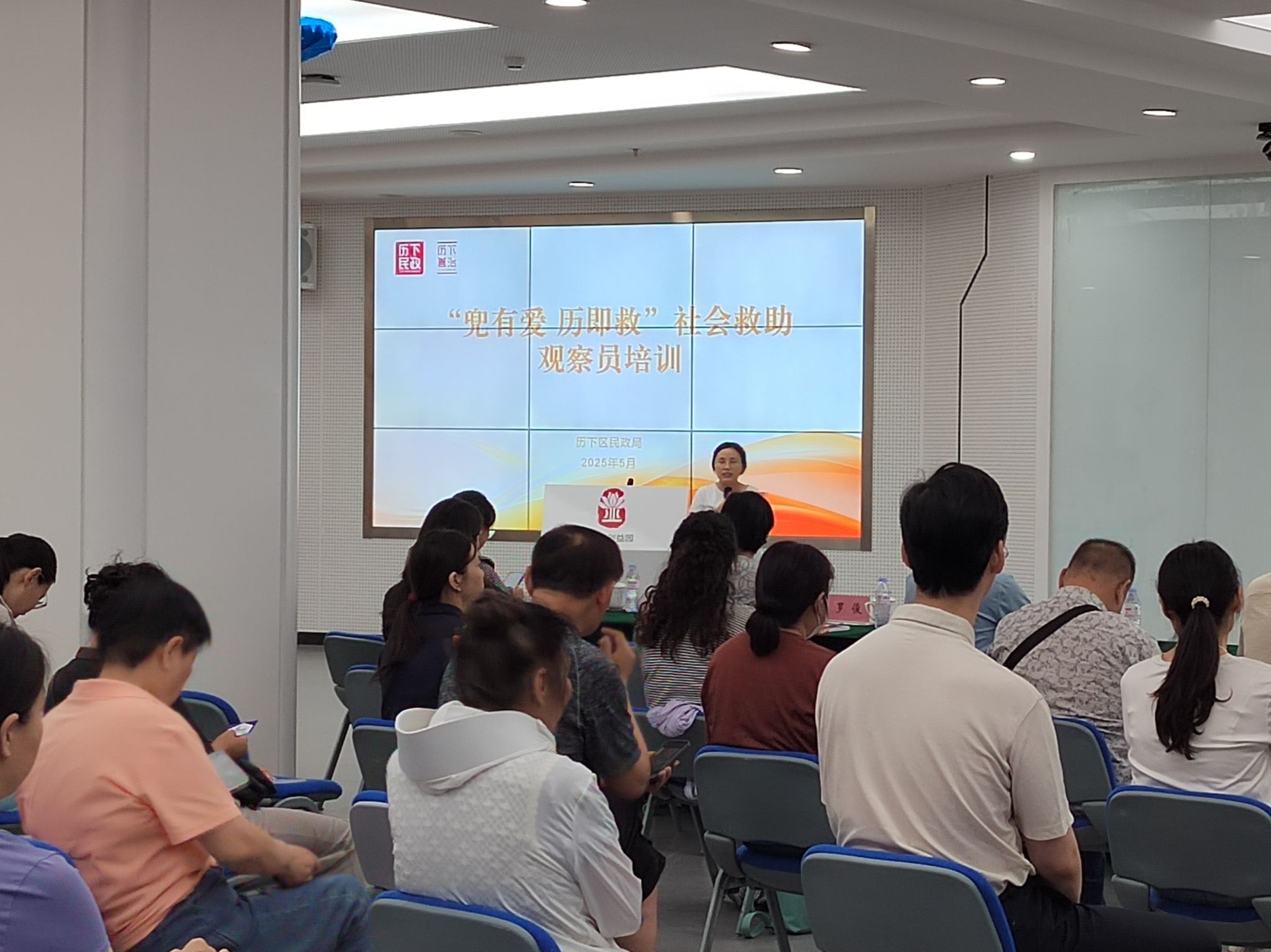 2025年5月19日,在历下区民政局的指导支持下,糖心视频2022级社会工作专业实习生协助济南市历下区善治公益发展中心开展了“兜有爱·历即救”社会救助观察员培训会活动。本次培训会旨在通过系统的培训,提升社会救助观察员的专业素养和服务能力,建立政府与困难群众的“连心桥”。