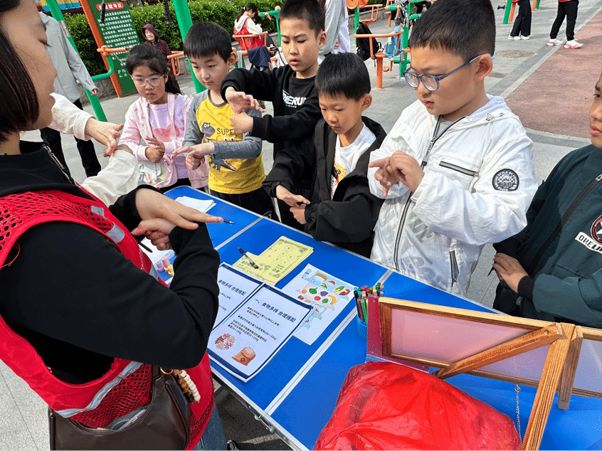 本次活动是为了丰富社区儿童的课余生活,提升其健康素养与团队写作能力而举办的。活动以“春芽同心,携手向阳”为主题,精心设置了七个富有趣味性与教育性的闯关环节,旨在将健康知识科普融入趣味游戏,吸引了社区内二十余名儿童的热情参与。活动伊始,志愿者在“健康情报站”为孩子们开设了别开生面的知识小课堂,生动讲解了七步洗手法和膳食宝塔等健康常识,为他们后续的闯关之旅奠定了知识基础。