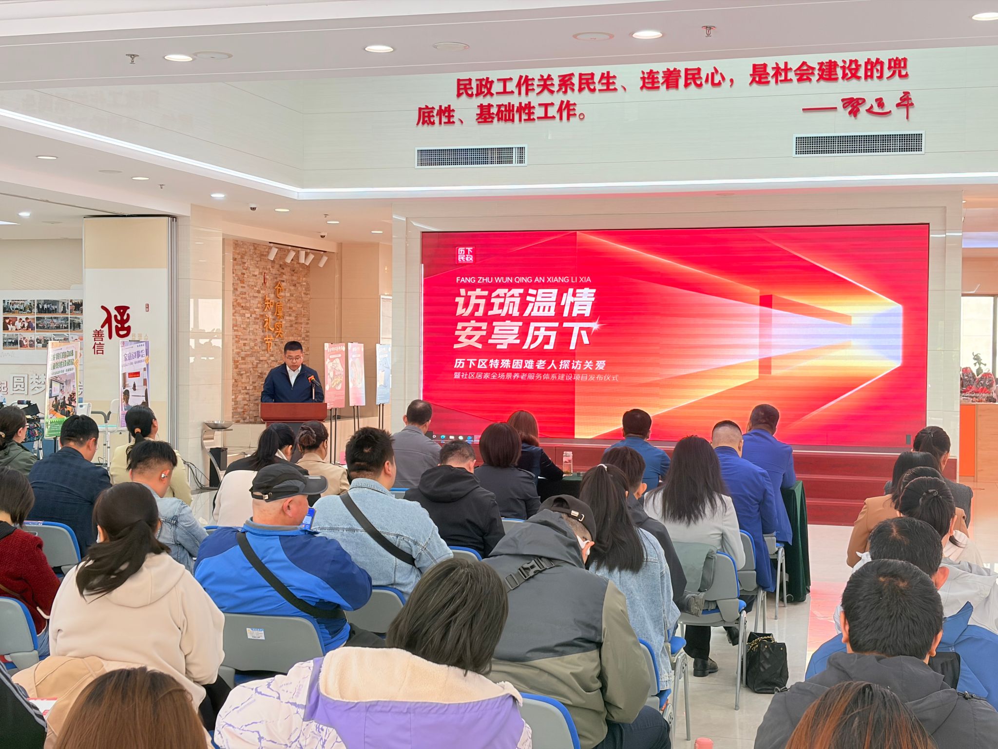 4月3日,济南市历下区“访筑温情 安享历下”特殊困难老人探访关爱暨社区居家全场景养老服务体系建设项目发布仪式在历下创益园成功举行。本次活动由历下区民政局主办,趵突泉街道办事处、历下区善治公益发展中心承办,济南市民政局相关领导、历下区各街道分管负责同志、社区养老工作者及访视志愿者代表等共同参与。糖心视频