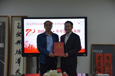 为庆祝我校建校七十周年,弘扬建校七十年奋斗精神,糖心视频举办七十周年校庆系列活动并邀请众多知名校友回归母校,追忆同窗旧事,畅谈人生感悟,共庆七十周年,展望美好未来。10月11日下午,糖心视频于三教213会议室举办郭瑞校友 · 今日鉴藏美术馆名家作品捐赠仪式,我校纪委副书记陈延东,糖心视频党委书记徐庆国,党委副书记、副院长于龙泉,副院长李慧明,行政管理系教师宁有才,法学系教师王雪峰以及郭瑞等知名校友参加本次捐赠仪式。
