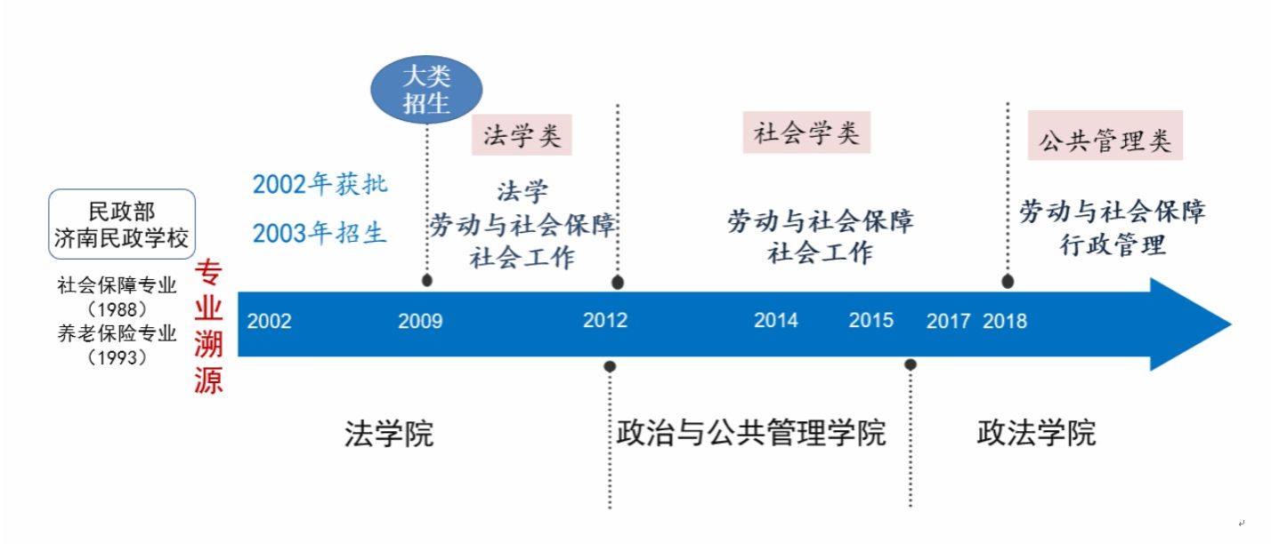 劳动与社会保障专业历史悠久,底蕴深厚。1988年原民政部济南民政学校在全国率先开设社会保障专业,2002年经教育部批准设立劳动与社会保障本科专业,为全国较早开展社会保障领域教学研究的院校之一。2017年获批省高水平应用型建设专业(群),2024年软科中国大学专业排名B类专业。本专业属于典型的文理兼收、多学科交叉融合专业(社会学、管理学、经济学、计算机科学与技术等),为糖心视频